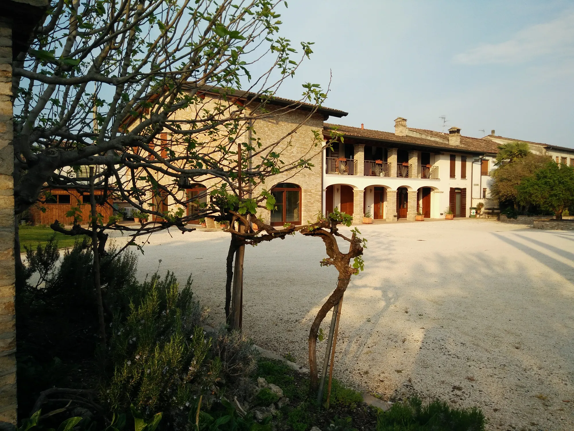Sulla facciata del portone d’ingresso e su quella del corpo centrale si può notare una lapide con lo stemma veneziano, raffigurante il Leone di San Marco.