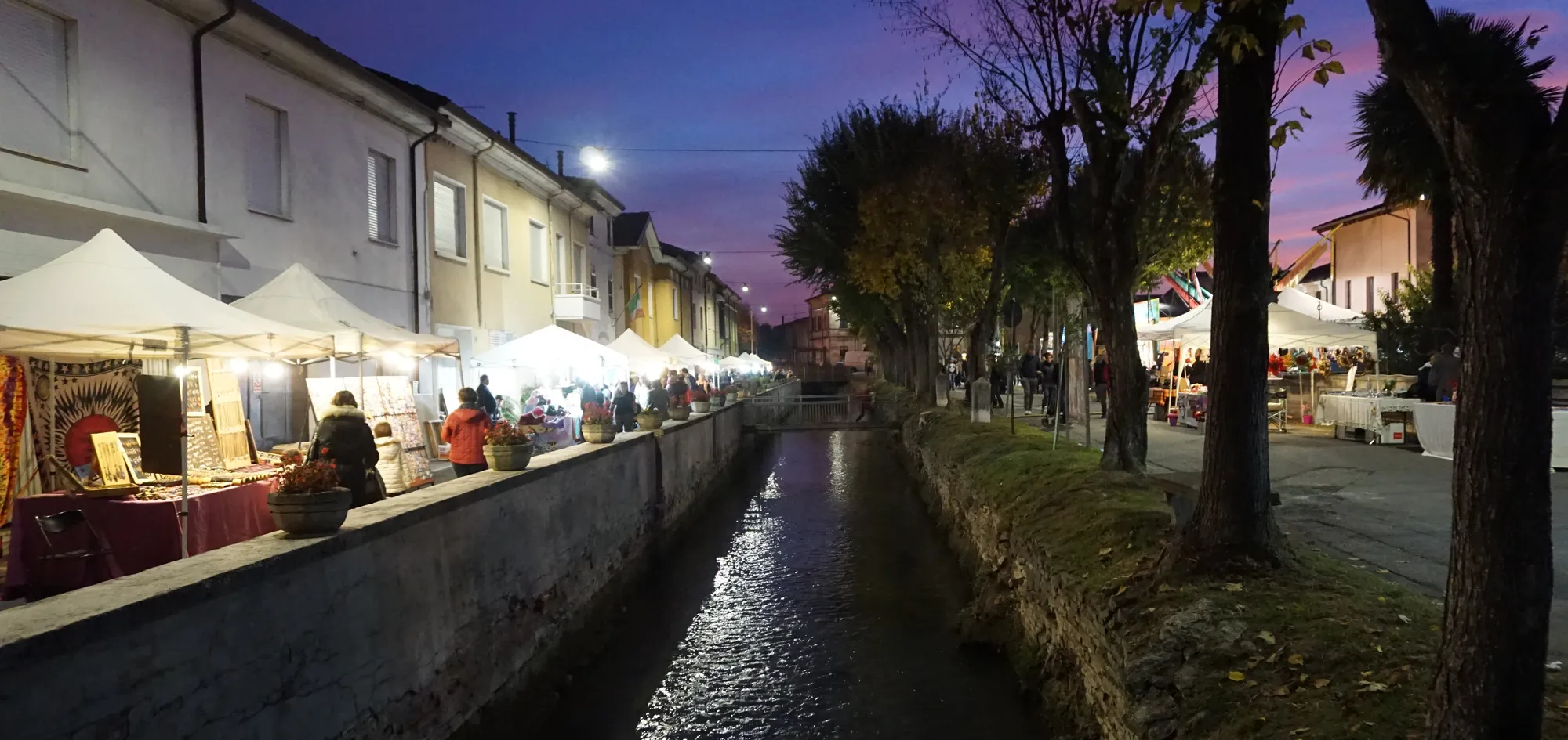 È situata poco a nord del centro abitato, lungo il corso del Tartaro-Fabrezza, al termine di un bellissimo viale alberato.